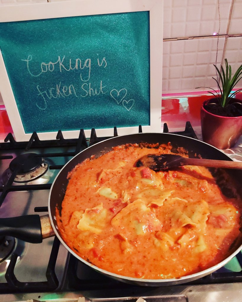 It’s another exercise in self worth. If a meal I fancy needs lots of ingredients, pots and pans, and effort, then I just tend to think, meh, I’m not worth the bother. But I AM! We all are! So, over the last week or so, I’ve been cooking as if I was cooking for someone special. I am – it’s me, but you know what I mean. I’ve even made a dedicated Instagram page so I can share my creations and get that serotonin hit from someone telling me dinner looks good. (Shameless plug; it’s kitchen_vvitch_vegan_bitch, if you want to see me eating like a queen). Light a candle, pour a glass of wine, get a podcast on, and sit at your dining table. It’s almost like a dinner party, every night!